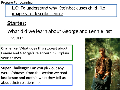 Of Mice And Men To Understand Why Steinbeck Uses Child Like Imagery To Describe Lennie Teaching Resources